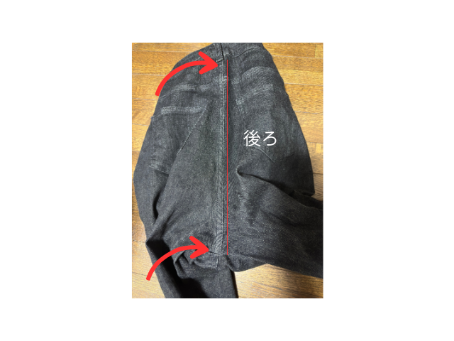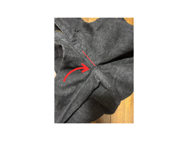 股ぐり(十字部分)から前後の長さを測り、余分な部分をカットして調整しました。