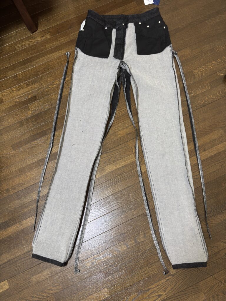 下に見本のスキニーパンツを置き、バランスを確認しました。