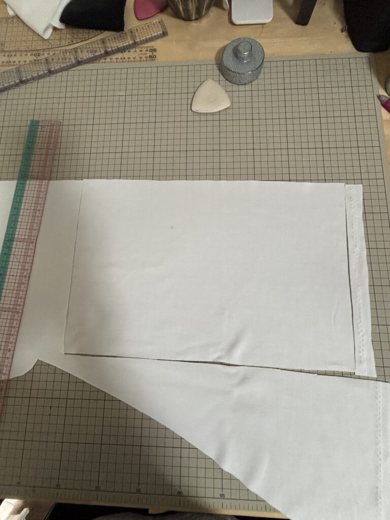 追加で生地を買いに行こうか迷いましたが、つぎはぎデザインにしようと思いました。